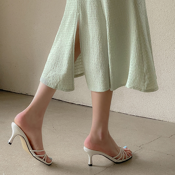 ラウンド ほっそりした ストラップ スリッパ ヒール