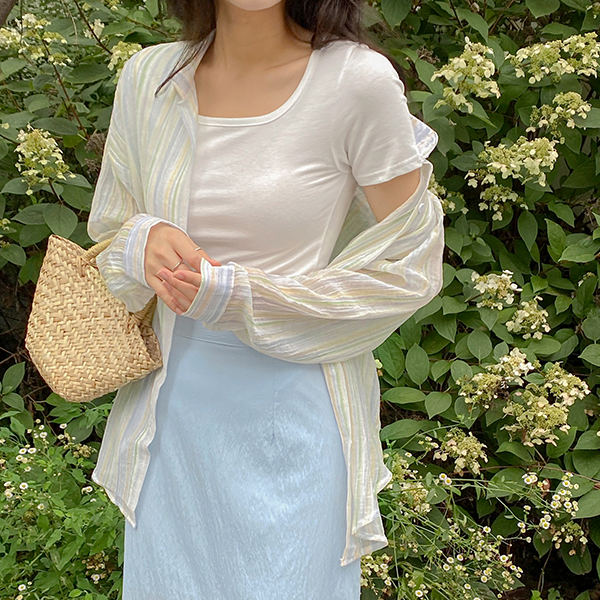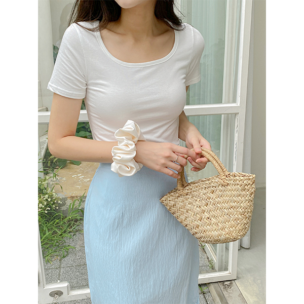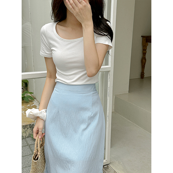 シルキー モダール スクエアネック Cheese 弾力 ティーシャツ