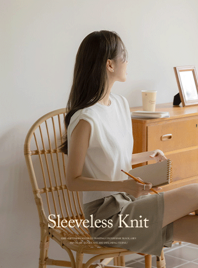 すらりとした カバー ピンタック ラウンド 袖なし ニット