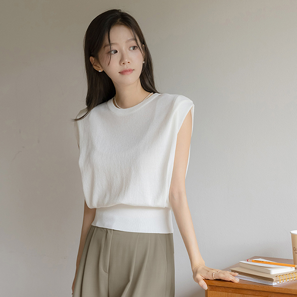すらりとした カバー ピンタック ラウンド 袖なし ニット