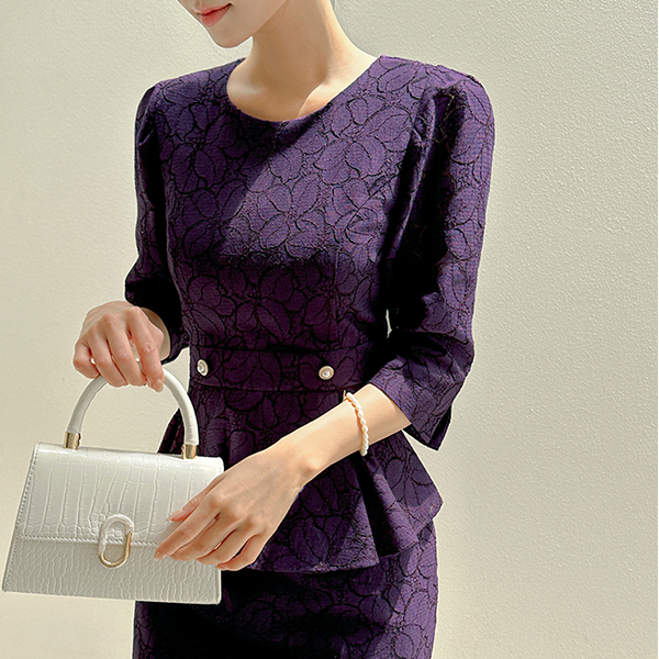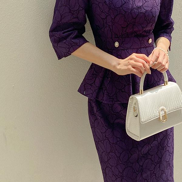 エンボスレザー マーブル 配色 ラウンド バックル トートバッグ