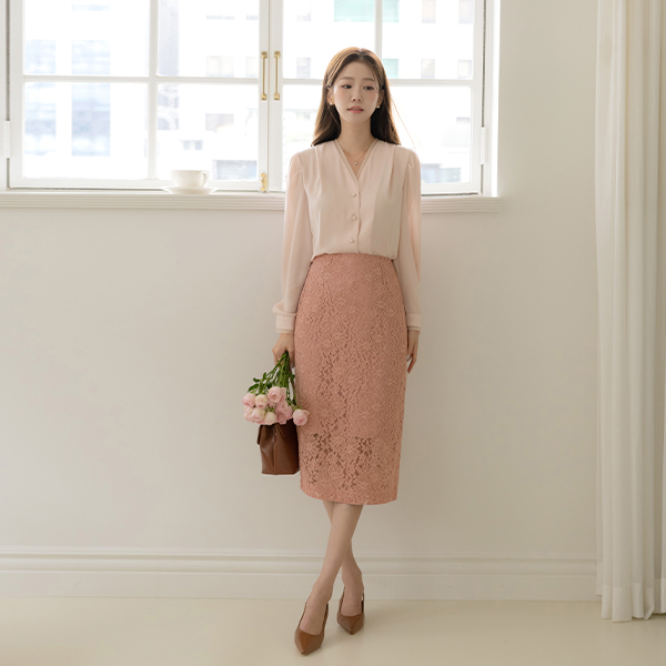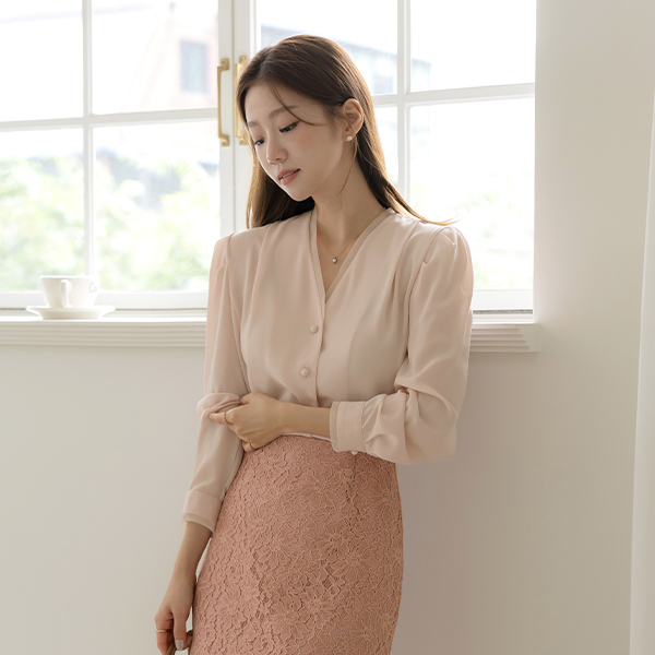 オーガンザ 配色 裏地 ピンタック パフ袖 長袖 ブラウス
