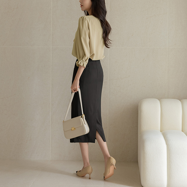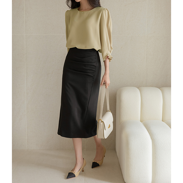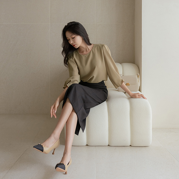 헤이즐 クロップド 真珠 袖 ブラウス