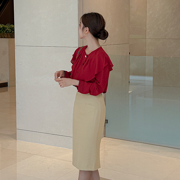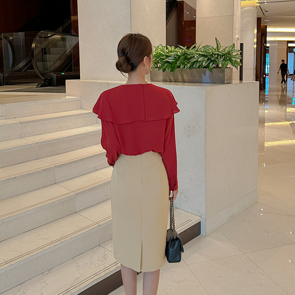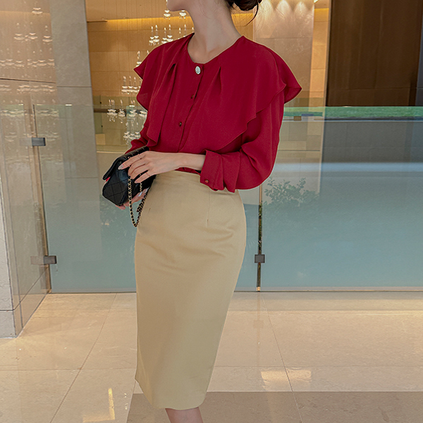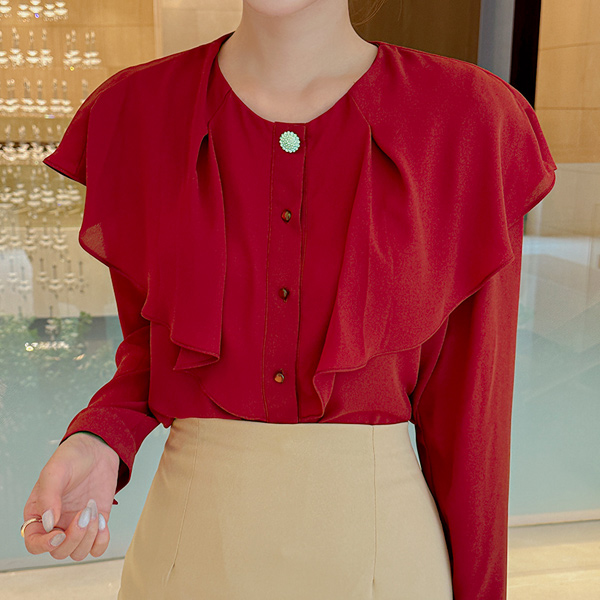 ケープ スタイル 真珠 탑버튼 ブラウス
