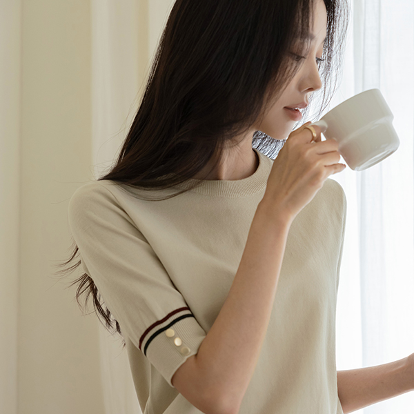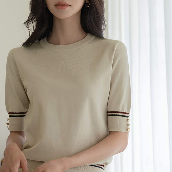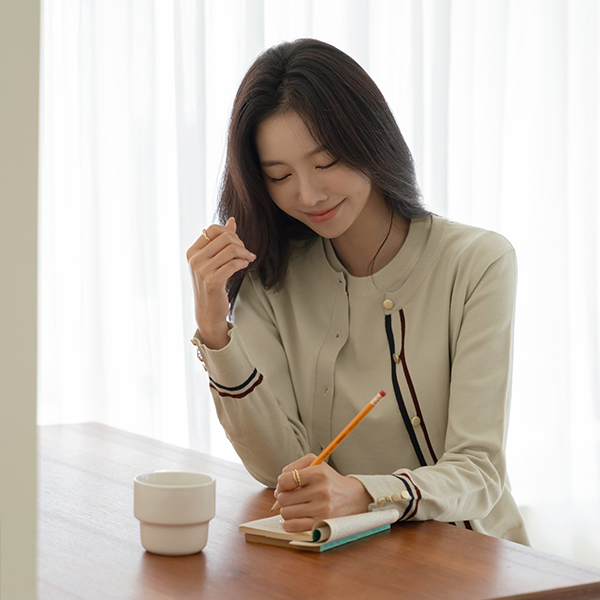 ゴールド ボタン 配色 ライン ニット カーディガン