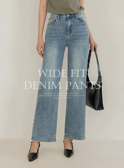 細かく美しい 弾力 ワイドフィット 隠れた バンディング デニム パンツ