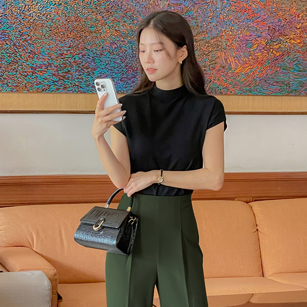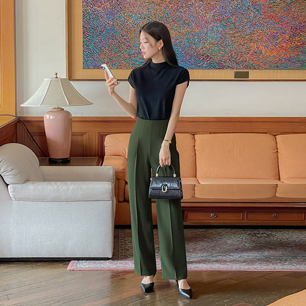 細かく美しい 弾力 ワイドフィット 隠れた バンディング デニム パンツ