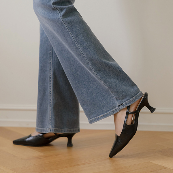 スリム スティレット スリングバック ミドルヒール