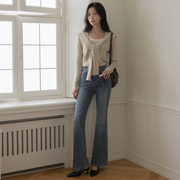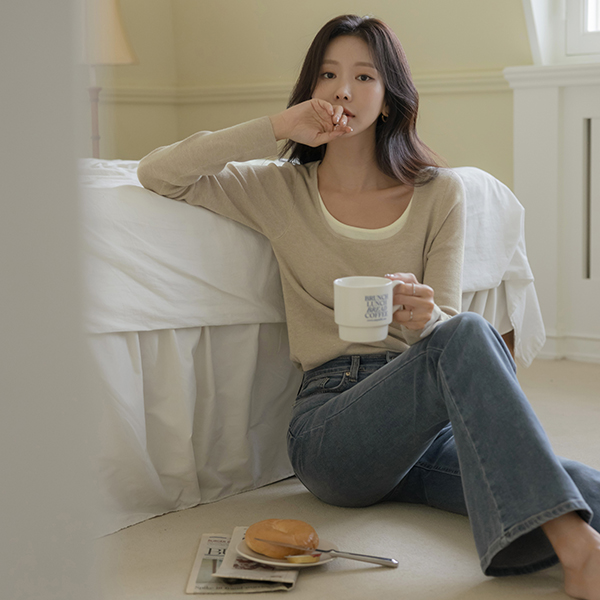 シルキー ウール 配色 レイヤード ニット&ショール (セット)
