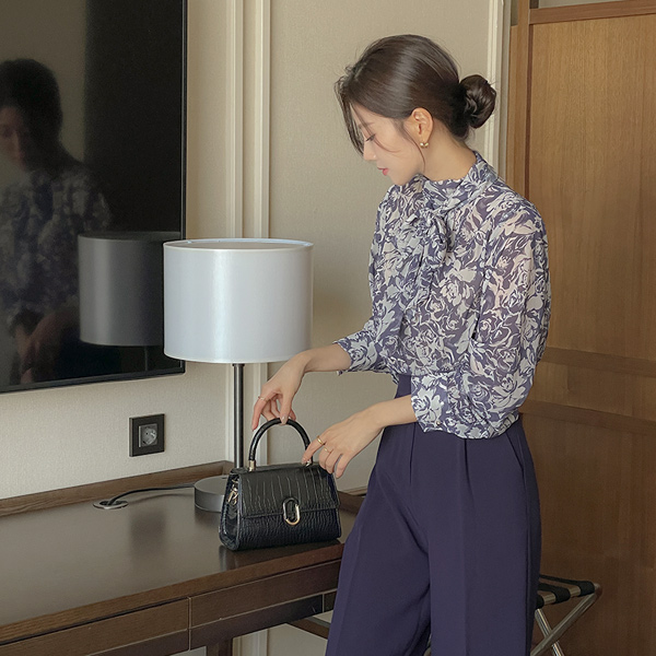 エンボスレザー マーブル 配色 ラウンド バックル トートバッグ