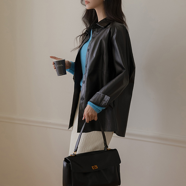 秋 シングル カラー ルーズフィット シック レザー ジャケット