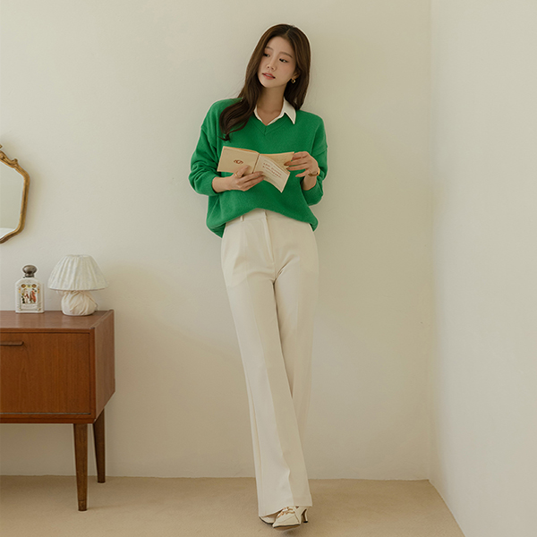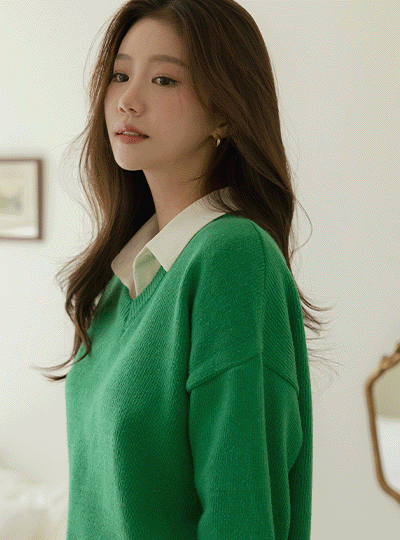 시에르 コットン Vネック デーリー カラー ニット