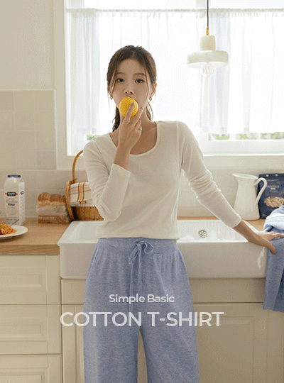シンプル ベーシック コットン 長袖 ティーシャツ