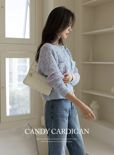 キャンデー ミックス カラー 花柄 ボタン カーディガン