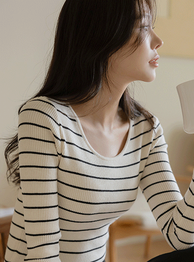 알프스 Uネック ストライプ ニット