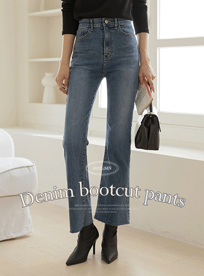 Stretchy-Waist 細かく美しい 弾力 デニム ブーツカット パンツ