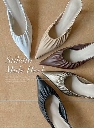 シャーリング 着心地のいい スティレット ミュール ヒール