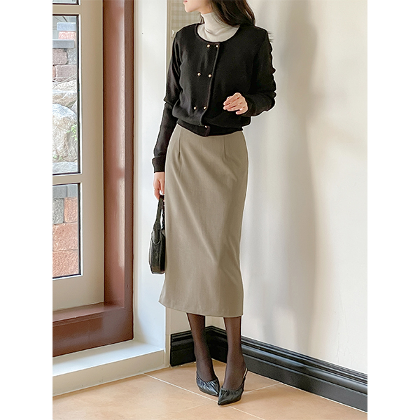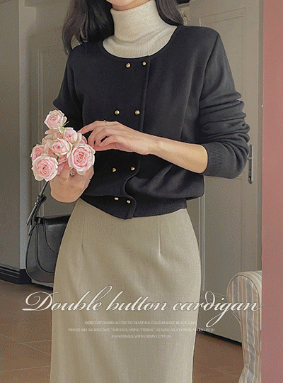 ミニ ダブル ゴールド ボタン ラウンドネック カーディガン
