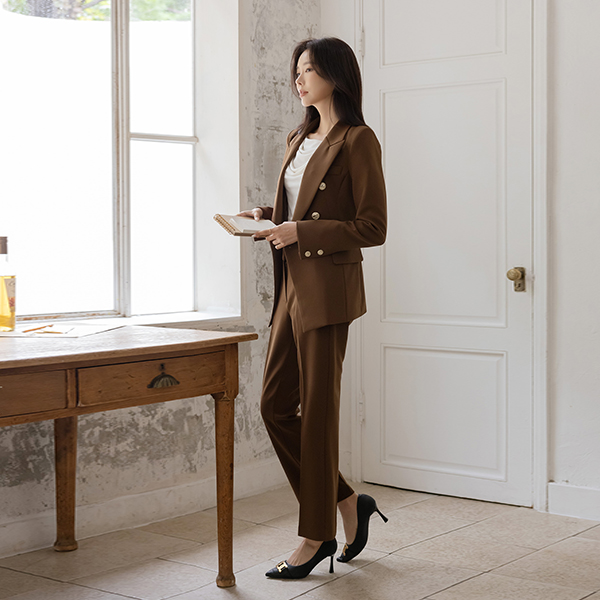 엘리샤 ゴールド ボタン スリム 弾力 Set-up ジャケット