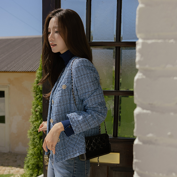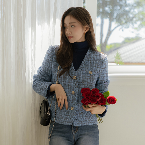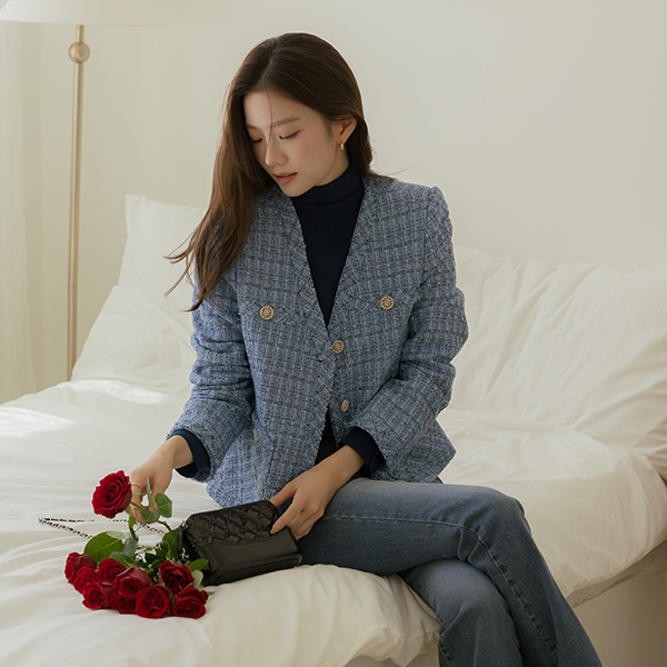 코브 パール チェック Vネック ツイード ジャケット