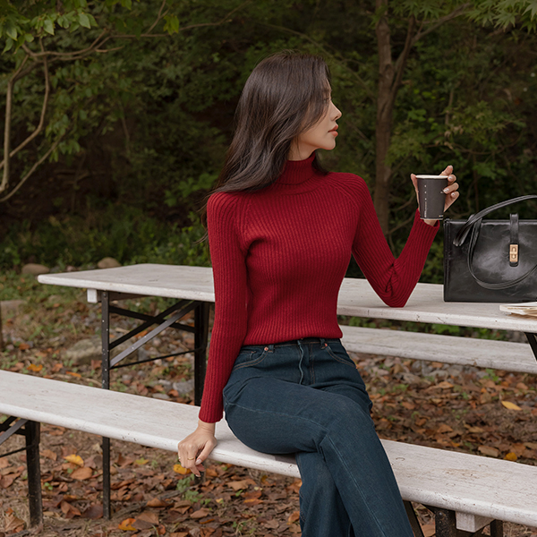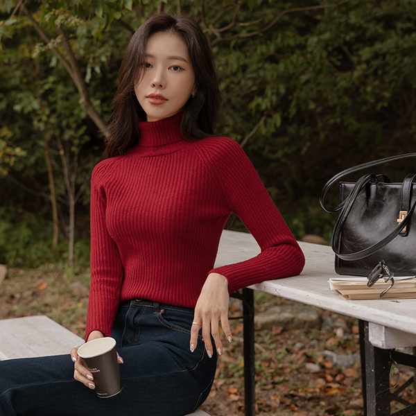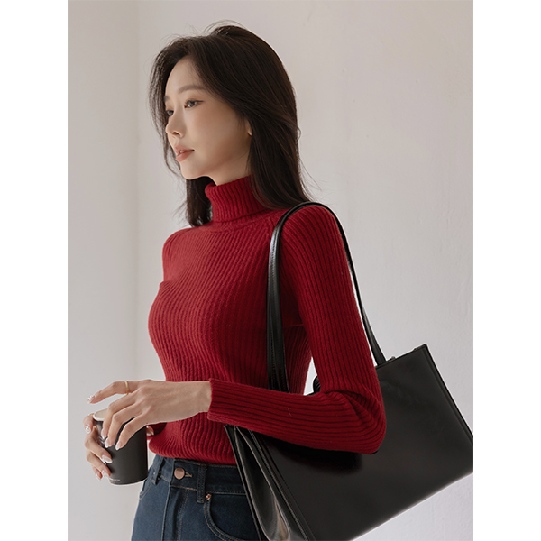 分厚い 細かく美しい コール天 ビスコース タートルネック ニット