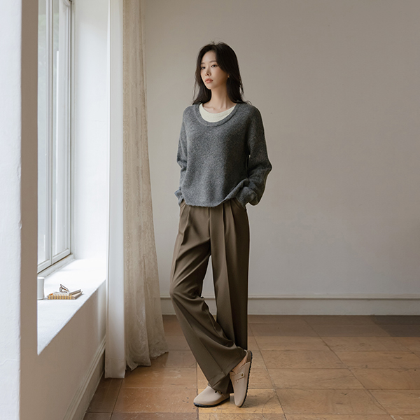 ぽかぽかした 配色 レイヤード ウール ニット