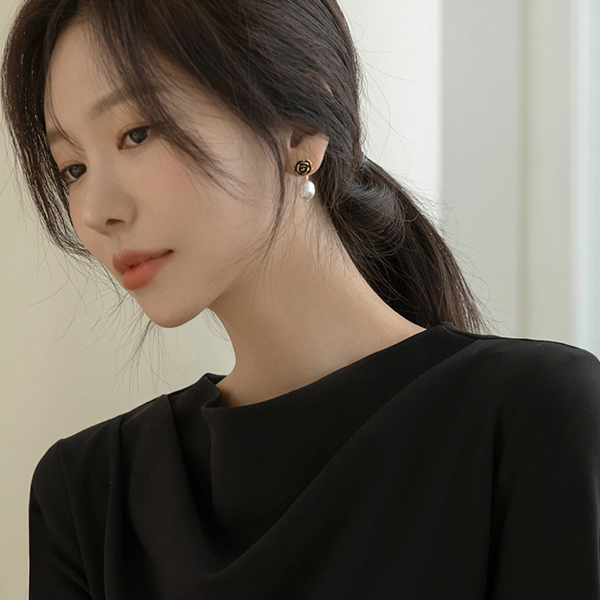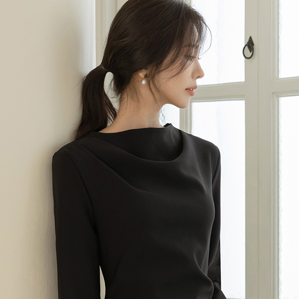 몸매 補正 쫀득 ハーフネック シャーリング ワンピース