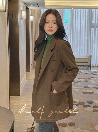 ぽかぽかした ダブル ボタン ウール ベーシック ハーフ ジャケット