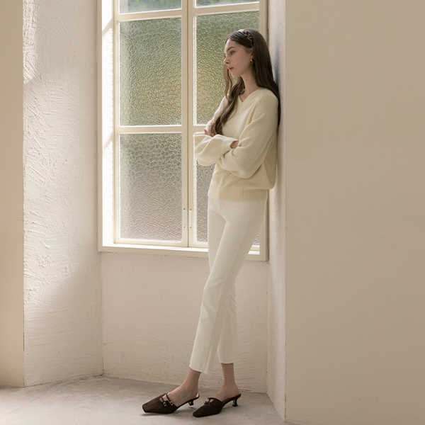 パステル カラー ほっそりした Vネック ウール ニット