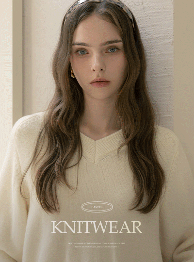 パステル カラー ほっそりした Vネック ウール ニット
