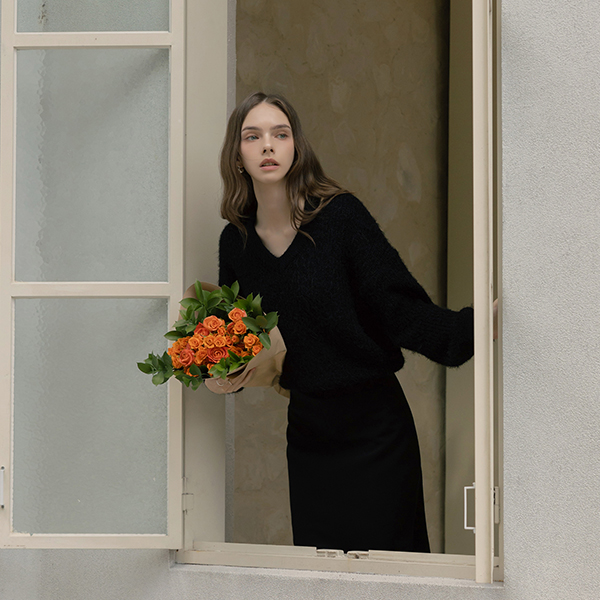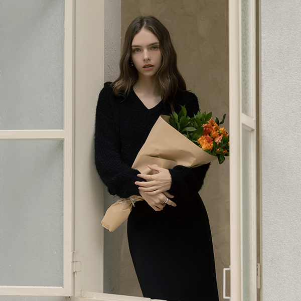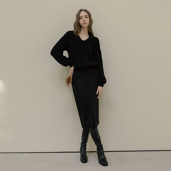 ほっそりした 切開ネック ODE ニット