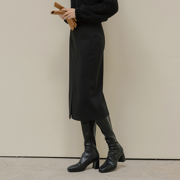 グロッシー フェイク レザー ロングブーツ ヒール