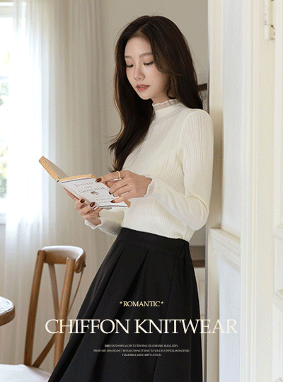 ロマンチック シフォン レイヤード タートルネック ビスコース コール天 ニット