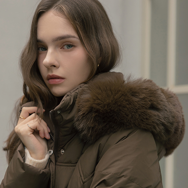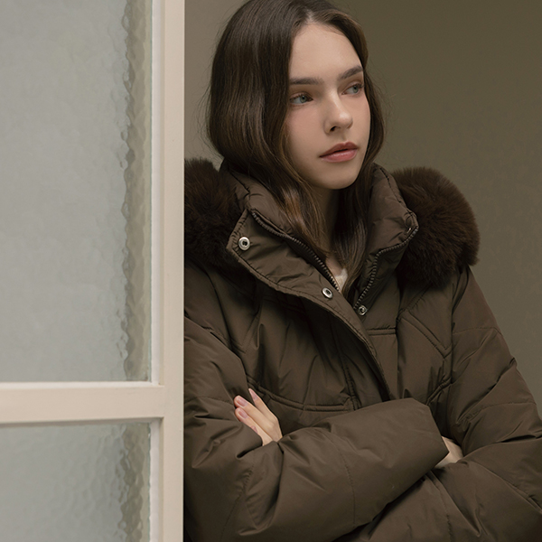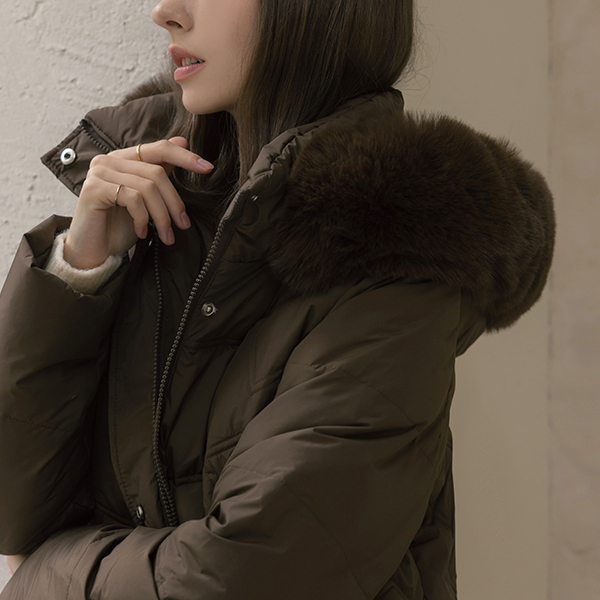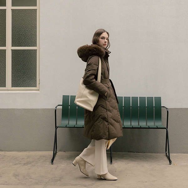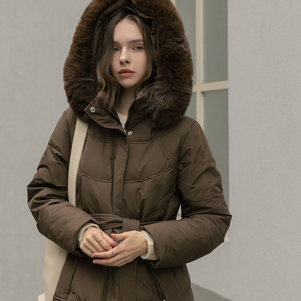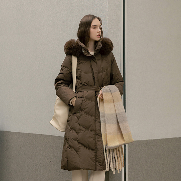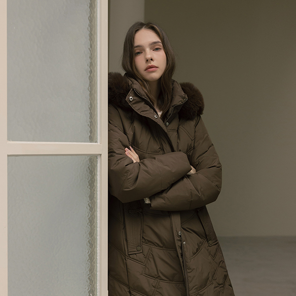 斜線 キルティング ダックダウン 100% ベルティード ロングなダウンコート