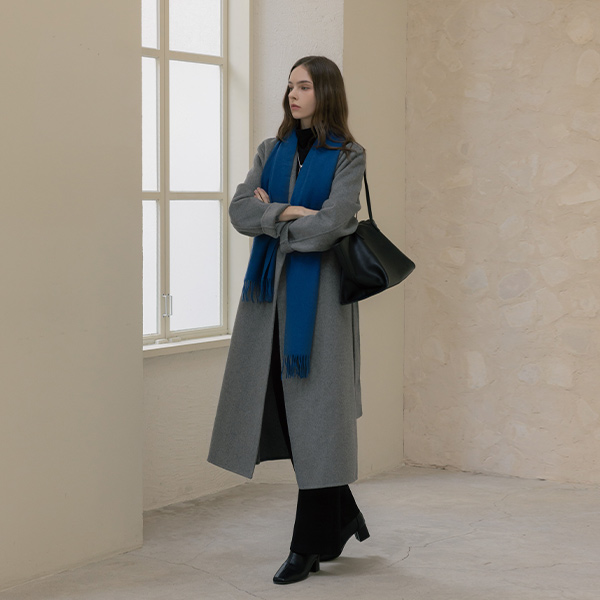 ダックダウン100% ワイド ショールカラー ベルティード ロングなダウンコート