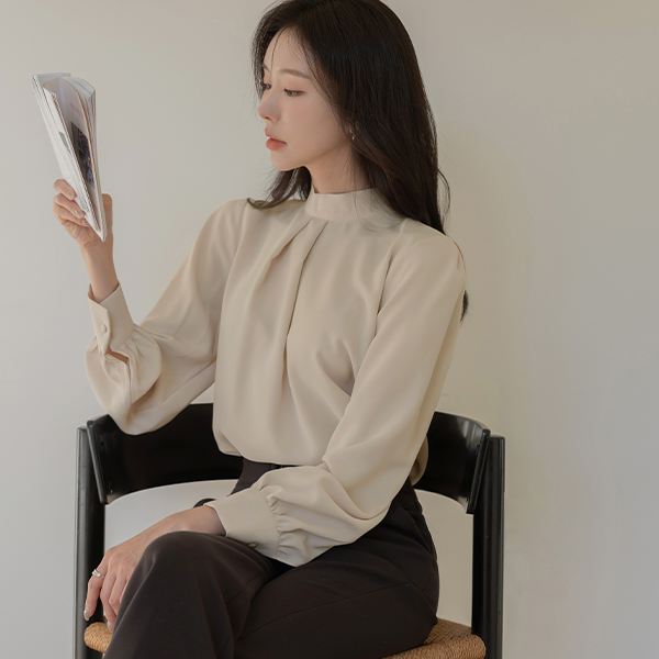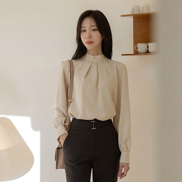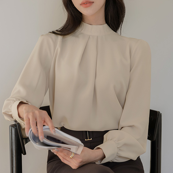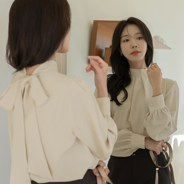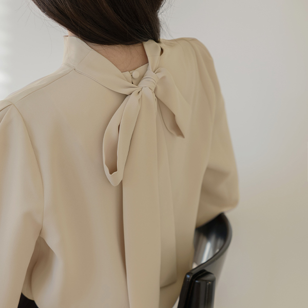 ハイネック タイ ブラウス