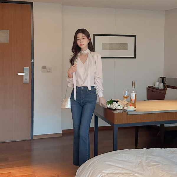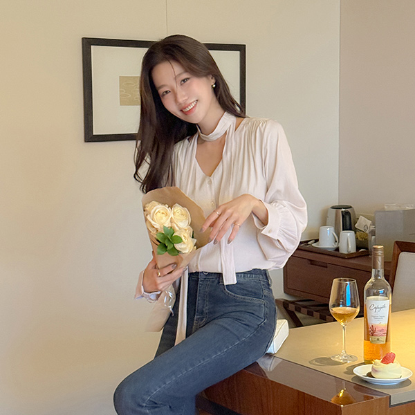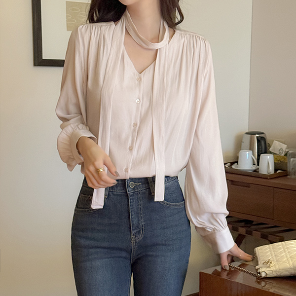 멜로 シャーリング タイネック ブラウス