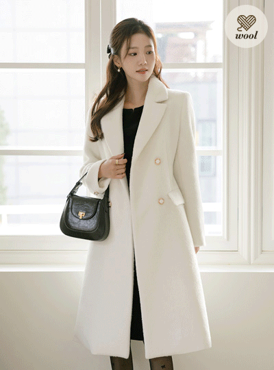 ぽかぽかした パステル カラー ダブル ボタン ウール コート