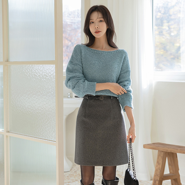 Ellin ほっそりした ボートネック ニット