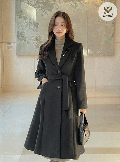 ブローチ ベルト (セット) Aライン ウール キルティング コート