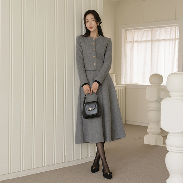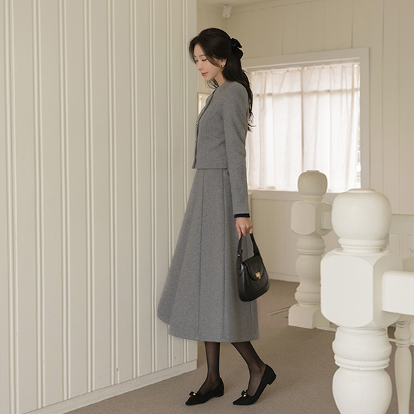 ベリー 分厚い ウール ツイード Hライン Set-up スカート