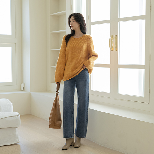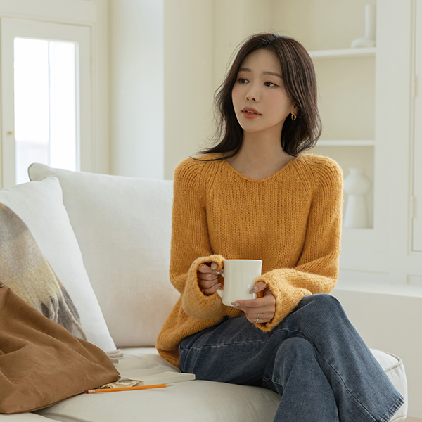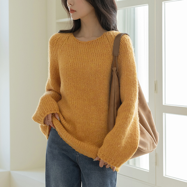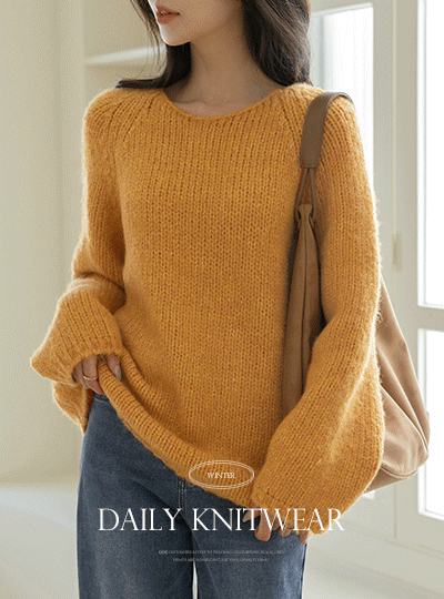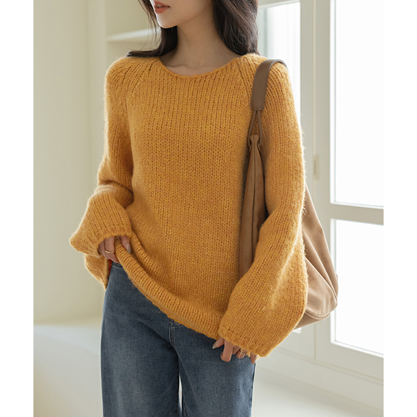 Ellin ほっそりした ルーズフィット 分厚い ラグラン ニット