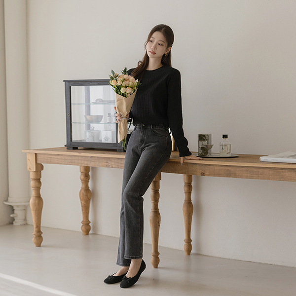 裏起毛 ぽかぽかした ラウンドネック 잔골지 ニット
