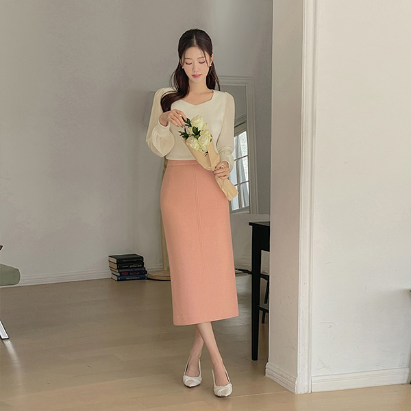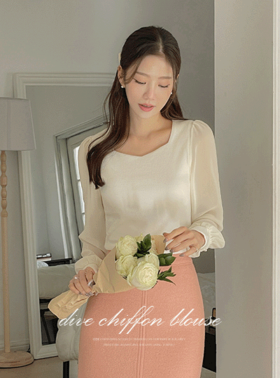 다이브 弾力 コール天 シフォン 袖 ブラウス