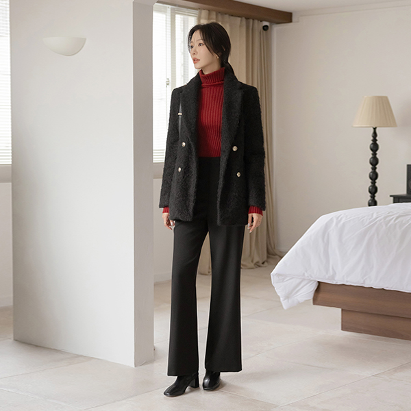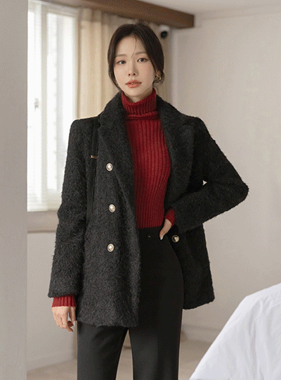 ウインター ブークレ ダブル ボタン ハーフ コート (キルティング裏地)