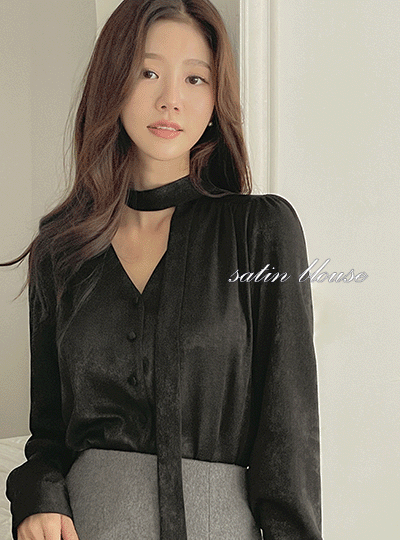きらっと サテン タイネック ブラウス