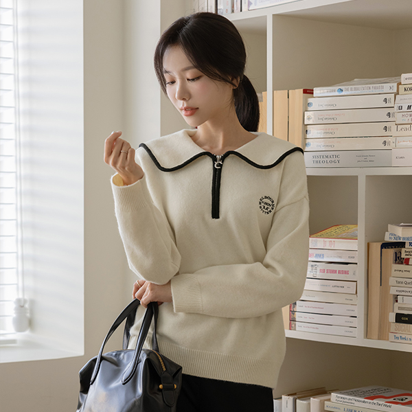 키츠 ほっそりした カラー ハーフ ジップアップ ニット