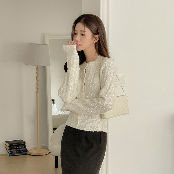 きらっと パール ミックス 分厚い ニット カーディガン