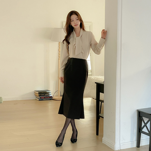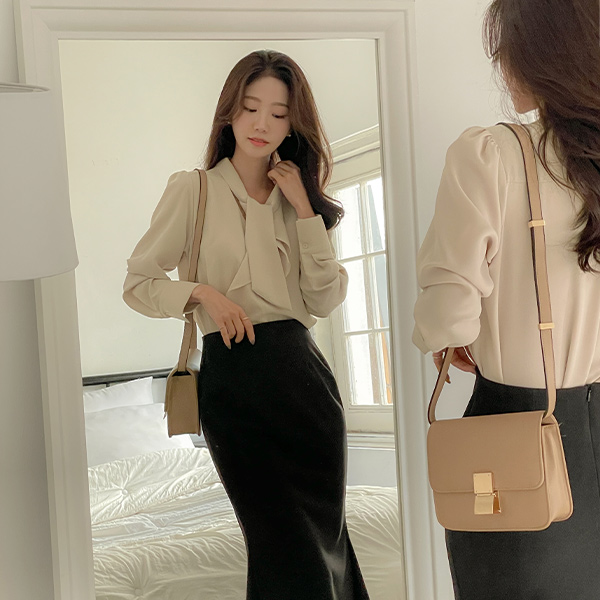 로맨스 ラッフル タイネック クリーミー ブラウス