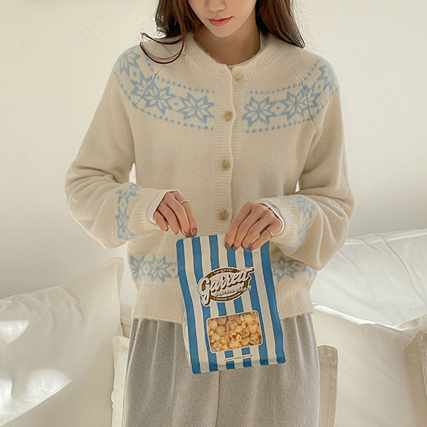 ふわふわ ラウンドネック ウール ノルディック ニット カーディガン
